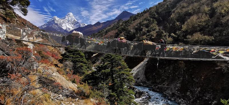 Except for a couple of trekking, all the treks in the Everest region are from Lukla, which is a widely popular gateway of the treks. A tiny airstrip of Lukla-Tenzing Hillary airport is just a 30-minute flight from Kathmandu. After landing at Lukla, you follow the Dudh Koshi River Valley, cross several suspension bridges, and head continually through the Sherpa highland.
