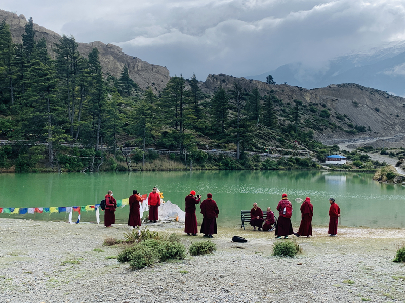 In Mustang, if you want to take a side trip for about 15 minutes, there is a beautiful Lake, known as Dhumba Lake, just at the foot of the dramatic peak. It remains frozen in winter. On the way, you will get an opportunity to explore another ancient town of Thini.