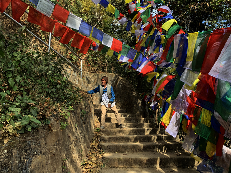 The way to the Asura Cave, fully decorated by the Buddhist Prayer Flags