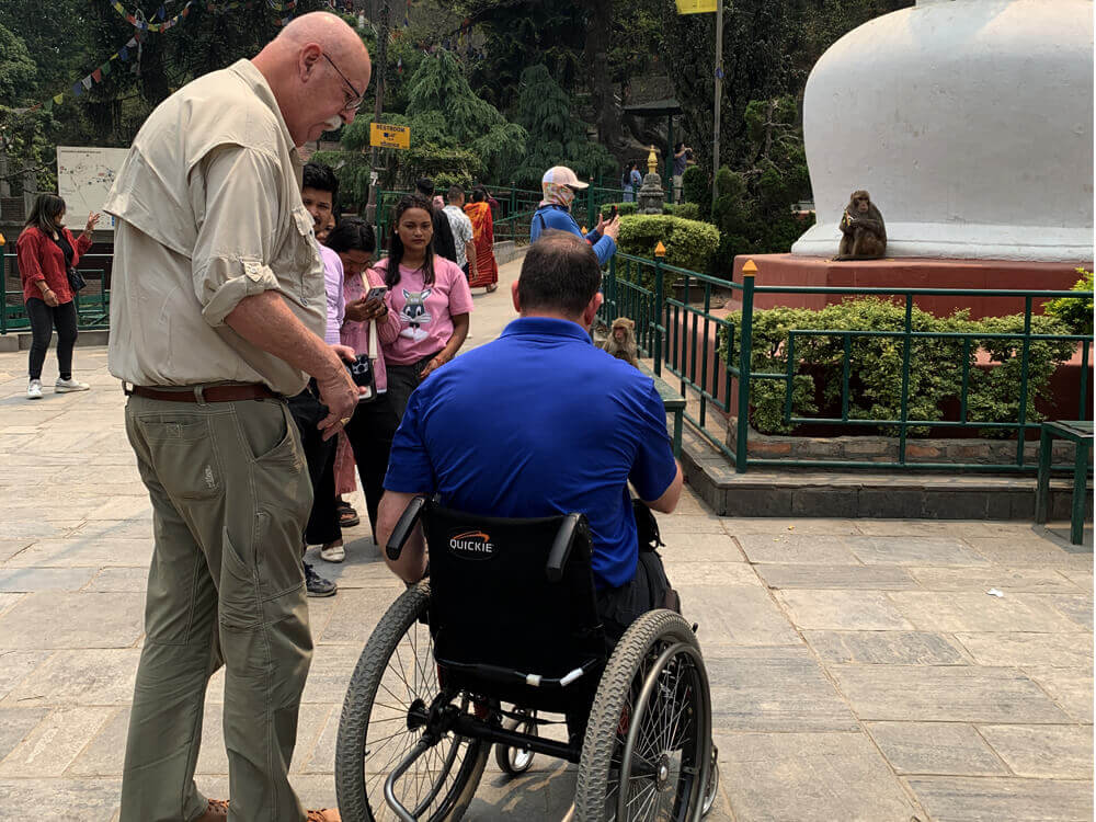 UNESCO-World Heritage Sites Wheelchair Accessible Tour in Kathmandu Valley explores major highlights of the cultural monumental sites in the medieval town. The wheelchair users can get through insights into the arts and architecture that flourished in the medieval era- from the 11th century to the 21st century. All the monuments are Hindu and Buddhists ‘spiritual destinations and are richly loaded with wooden and stone sculptures.